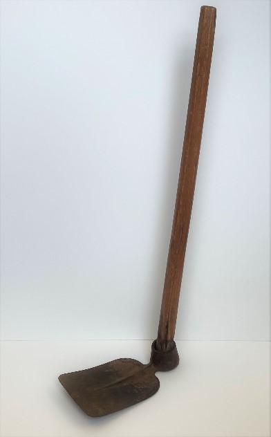 - Description The hoe has a rounded locally crafted wooden handle while the iron blade was purchased in a hardware store or market. In the past, local or travelling iron workers forged the metal which was then processed into the tools by a blacksmith. All across sub-Saharan Africa, farmers practice slash and burn cultivation. Using a machete, men clear the brush or chop down trees. Once the debris has dried, the plant material is burned to clear the land and deposit a layer of fertilizer in the form of ash. Then, people (usually women) use a hoe such as this to ready the soil for planting. The short handle and sturdy iron blade allow the user to dig deep into the soil preparing it for planting.
