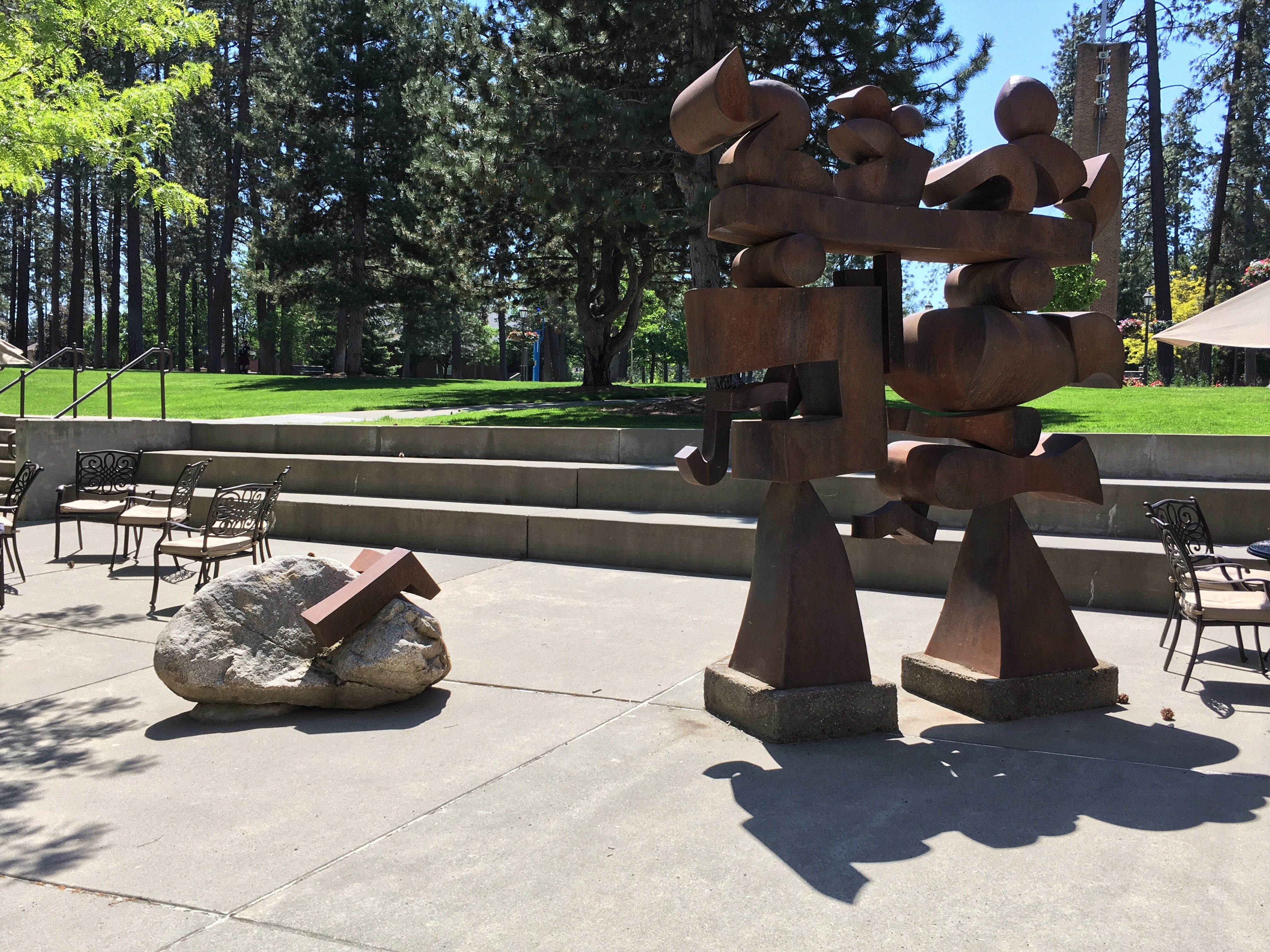 - Notes Harold Balazs was a legendary and beloved Spokane figure. Balazs was well known in the Spokane area for his 1978 Centennial Sculpture, which appears to float on the Spokane River in Riverfront Park, and for the Chinese-lantern concrete sculpture behind the Spokane Opera House. Balazs' works have also been featured in Coeur d'Alene's annual Art on the Green celebration and are known throughout Washington, Oregon, Idaho, Alaska and Montana. In his 45-plus years of creating art, Balazs spent three terms as a Washington state arts commissioner. Balazs created the print "A Thing Examined" in conjunction with the installation of this public sculpture in Whitworth's Harriet Cheney Cowles Memorial Library courtyard; the courtyard was designed by Northwest Architects to feature just such an artwork. The sculpture was dedicated Sept. 27 in library courtyard as part of Whitworth's Homecoming Weekend festivities.