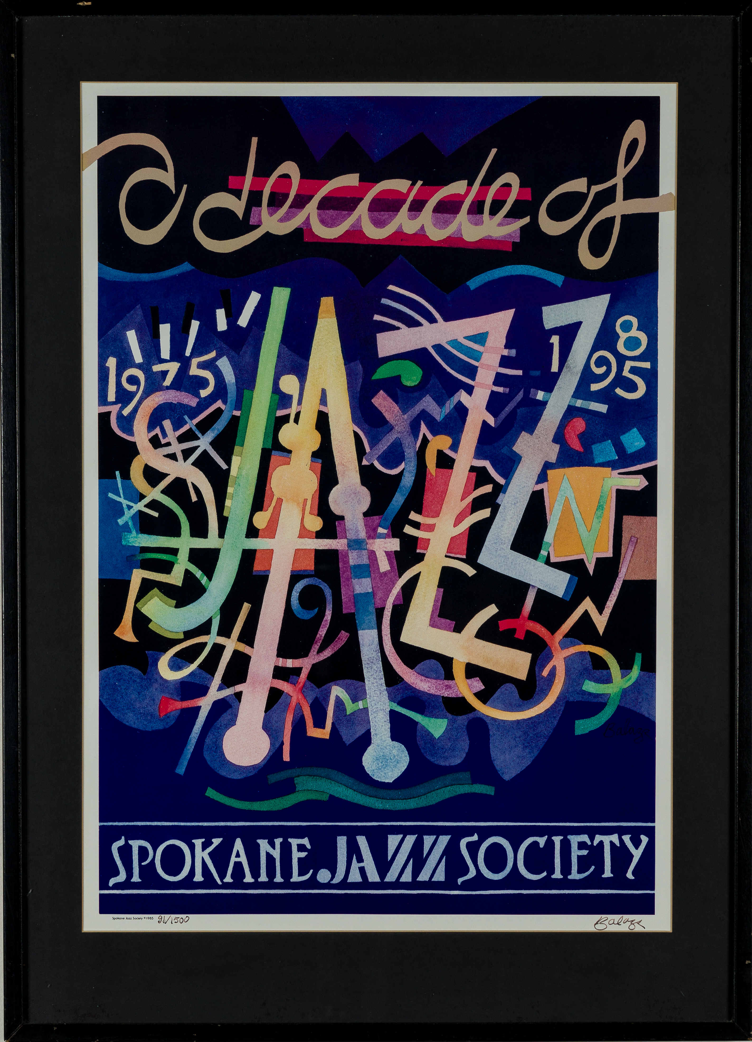 - Description A Decade of Jazz, Spokane Jazz Society poster, ed. 91/1500. Harold Balazs was a sculptor and artist known for creating large, abstract metal sculptures and other public art installations in various materials. He was born in Ohio, however he and his family moved to Spokane, specifically Mead, Washington, in the 40’s. Balazs’ work is diverse, ranging from enamel to painting, and primarily concerned with public art such as sculpture or mural. Many of his works are prominently featured in Spokane’s public spaces, such as the Rotary Fountain in Riverfront Park. Balazs was an “artist for the architects” as he was willing to create in nearly any medium while also being affordable. He and his wife Rosemary built a barn studio named Mead Art Works where younger artists would often trade their labor for Balazs’ mentoring. Balazs signature phrase was “Transcend the bullshit” which made its way into any number of his pieces.
